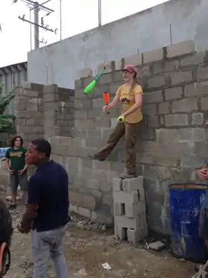 | July 5th | The start of the second 'section' of ecoladrillo. Also, Holly is showing off her awesome juggling skills as well as the progress the team she is on has made! Holly is on the Fibercrete team and they have very few bricks to add to the Botica Popular to finish their project. | ![]() ![]() |