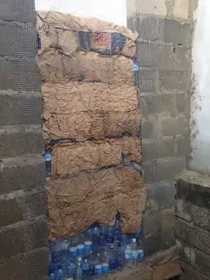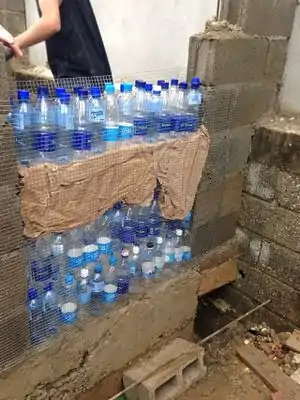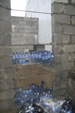 Ecoladrillo water bottle portion complete, and beginning of plastering