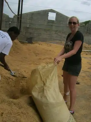 - First day to work on mixes. We went to Las Malvinas in the morning and, with Ginger's help, secured a barrel of sawdust from the coffin manufacturer who will be providing that material and the block-making site next door where we and members of the community will be doing experiments and making blocks with sawdust and other materials. We also were given two bags of lime and loaned two barrels for mixing the sawdust, lime and water to soak. After an initial mix, the owner of the plant arrived and made some changes to the mixture we had put together, encouraging us to "go big" with our experiments. There was a high level of interest from the community members who came to work with us - they really ended up taking over much of the work, sifting, mixing and all the while peppering us with questions. A kid from the community spent most of the afternoon with us helping mix the sawdust, lime and water. We will be returning to the site on Wednesday to try more mixes and Thursday is the day to press blocks.