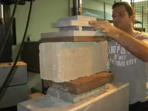 We used a hydraulic machine to test the blocks' compressive strength - The cistern cap was dry today and building commenced.