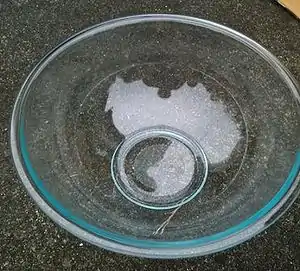 Outer Bowl The outer-most layer of the Solar Bowling Oven is comprised of a fairly large, about 15” diameter, glass or Pyrex bowl, as seen in Figure 2. A bowl with handles is easier to work with, but not necessary. This can be purchased at most grocery stores. Glass allows light through, but since it is not a good conductor of heat, the heat is trapped inside the bowl. The heat trapped inside the bowl cooks the food.
