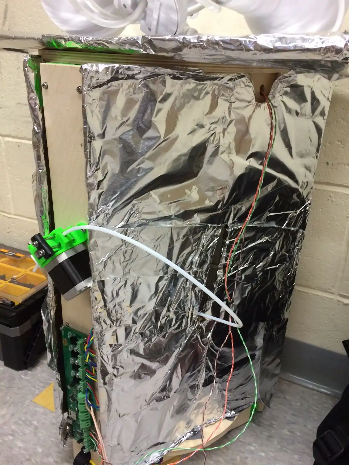 The enclosure was tested by heating the interior air with a blow-dryer up to ~130F. The temperature was then measured at 60 second intervals to test the insulating value of the enclosure, and the results can be seen in the gallery above.