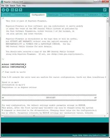 - Note that the IDE separates the different files that make up Repetier firmware into different tabs along the top of the edit pane. Locate the Configuration.h tab and click on it.