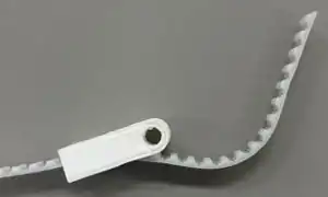 . - Insert the end of the belt back into the terminator, so the teeth lock together. Pull the belt out on the free side so it locks itself.