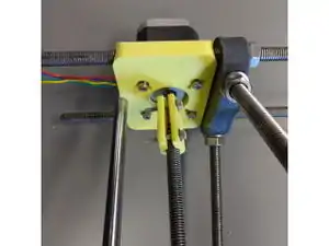 - Set the top nuts of the lead screws to approximately halfway of the lead screw, then push the X axis into the spring to thread the bottom nuts up. Thread them so far, that when letting the X axis rest on them, the top screws are flush with the plastic.