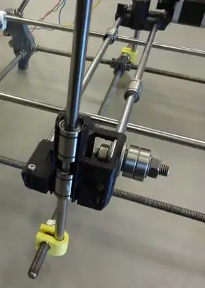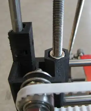 . - Next step is to assemble the lead screws. The washers in the picture shouldn't be used. The bottom nuts are in the picture, but aren't used yet.