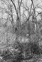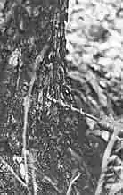The elderberry is nature's way of providing a spout to use in tapping the trees. Above--A patch of elderberries grow wild along the road near Ella Dunn's home. Below--A single elderberry stalk. Notice the joints that must be cut off to remove the pith.