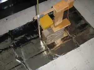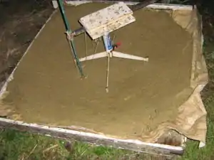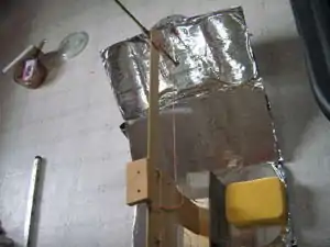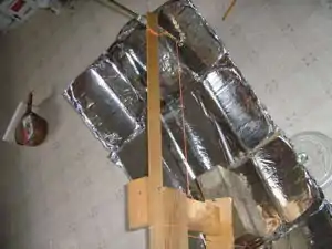 | This simple device was the first mechanical mathematician and was used to make a parabolic cooker with kitchen foil on a cob base! It worked well. | |