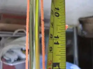 Remove the string from the hook and let the curtain rod drop till it touches the floor or foil. if you want a 10 inch high focal point, place your tape measure on the floor and mark the taut string at 10 inch height. Attach it to the 10 inch hook at that mark. For 12 inches, you have a mark at the 12 inch height and attach it to the 12 inch hook and so forth.