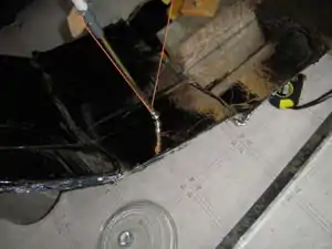 You should place the mathematician on the middle of the square of you solar cooker that you want to be bottom square. I then put a couple of marks on either side of the dark piece of wood in case it slips. I then put a little dot on the centres of all the other squares. 11 dots in my case. Next you must set the length of your string line.
