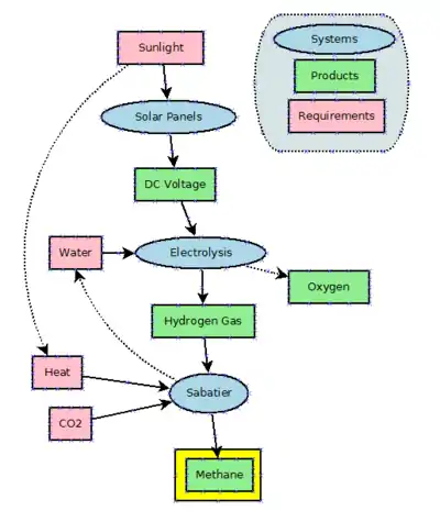 This is one example of how methane fuel can be produced sustainably. More info can be found from Wikipedia:Electrolysis and Wikipedia:SabatierReaction