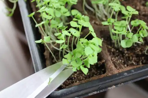 Harvest when the microgreens have grown lushly to around 2.5 to 5cm. The first true leaves should have grown (not the first set of leaves, which are the seed leaves).