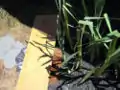 To use a greywater processor in lieu of a traditional septic system, it is the aquatic plants, and more specifically the microorganisms which live amongst the root systems of these aquatic plants which are responsible for the vastly improved water quality. For this project's plants, we turned to aquatic plant specialist Rick, of Freshwater Farms. Rick is extremely knowledgeable regarding marsh species and steered us into using the native plant species Cattail (Typha spp.) These plants are extremely adept at purifying water in a very short amount of time. We had the opportunity to visit Freshwater Farms, to go out into the habitat and were permitted to select seventeen right out of the living marsh system. For such an endeavor we recommend procuring permission to wild harvest such plants. To dig the Cattails up, we used pitchforks. (It is important to carefully pull up each cattails with it's two taproots intact.) For this sub-surface greywater system, we planted them in a substrate of pea gravel. These plants are relatively easy to plant and need to simply be submerged more than one foot into the substrate.