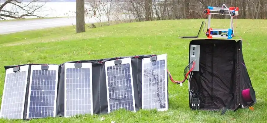 To improve on the design of the original mobile solar powered 3D printer. Build a smaller, more portable charging station, that runs solely on renewable energy for a 3D printer using open source appropriate technology.