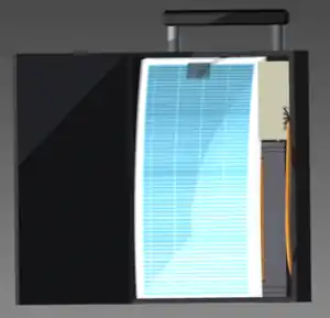 While in the design, the panels are shown uncovered, in reality they will be bundled up with a sturdy canvas fabric that they will be mounted to. The canvas will act as protection during transporting. It will also hold them all together and act as a tabletop for the makeshift panel mounting apparatus that will be used to align the panels in the field.