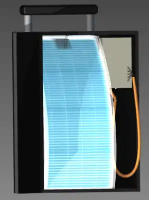 This version was designed to fit in a standard travel suitcase. This increases its ability to be transported to the remote locations that it will be most useful. While the original idea was to put it in a carry-on suitcase, it was decided that with the current state of airport security, the likehood of being allowed to transport this with you on a plane was low. So a standard size suitcase was chosen instead.
