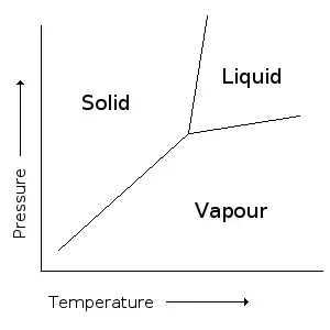 Within the effusion cells, the major process driving flux generation is the solid-vapour phase equilibriumW. A general phase diagram for a single component system is shown to the right. The pressure at which the MBE process is undertaken is below the triple point (where the three lines meet), and thus the only phases present at equilibrium are solid and vapour. Equilibrium is met at normal operating conditions if the effusion cell is properly designed. Gibb's phase law states