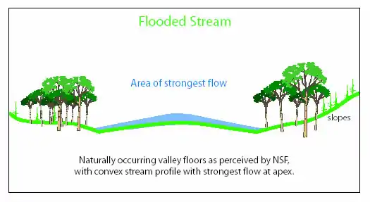 These NSF testings have resulted in increased bacterial productions helping to provide essential nutrients in a ready to use form. NSF can do what mineral fertilizers cannot do - produce a functional soil rather than just a hydroponic support medium. A diversity of plants is encouraged by NSF succession approaches using grazing, slashing and mulching to produce a resilient system with essential elements. As surface soils are often prone to leaching, NSF advocates deep-rooted plants to stabilize them while accessing and recycling trace elements to support later successions of palatable grasses. For soils and plants, the role of NSF structures in generating flow form patterns in streams can be as important as reducing the velocity of flows. Certain patterns can help produce new soils through the deposition of sands, clays and organic matter on the floodplain while protecting the lush vegetation already there.