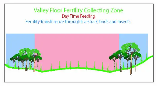 Under NSF, cropping is best suited to methods complementary to retaining significant areas of season-specific perennial pastures. If needed, cultivation may be confined to soils on valley slopes rather than floodplains but it can be worth exploring direct-drill minimum-till broadcast methods first. Horticulture can be sited off flood plain areas, with careful transfer of valley floor fertility and water within the NSF system. NSF harmonises well with organic approaches to producing premium farm produce for a growing domestic and export market. Increasing numbers of consumers and vendors are demanding products produced with environmentally sustainable systems coupled with farm accreditation and certified produce before acceptance. The use of outside inputs or recycling farm produce on the property can be part of managed fertility transfer, both on the farm and in the sub-catchment. For instance, hay making of legume-rich pasture can be rotated around various areas of a property to work in with weed reduction needs and fertility management. Irrigation is best-sited on valley floors although most areas managed with NSF require minimum supplementation of water transfers already naturally occurring on and beneath the floodplain.