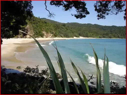 New Chums beach, or Wainuiototo in Maori, is located on the east coast of the Coromandel Peninsula on the North Island of New Zealand. Voted by The Observer as one of the top 20 deserted beaches in the world, and not accessible by road, New Chums has long been a favourite tranquil getaway for locals and visitors alike.The white sand beach is shaped like a half moon and is surrounded on three sides by rocks, cliffs and bush and on the other by the Pacific Ocean. It is home to many species of flora and fauna including, mussels, snapper, dolphins and pohutakawa trees.