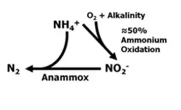 Anaerobic ammonium oxidation (anammox) is a recently discovered microbiological process that converts ammonia (NH4+) and nitrite (NO2-) to nitrogen gas (N2).