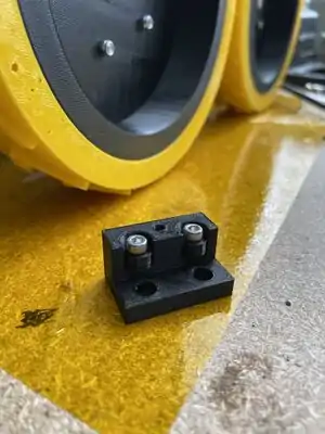 - Place Bearing into cylindrical cutout of SensorRackTrack. Attach with two M3x12 bolts.