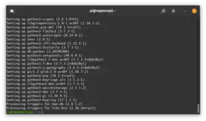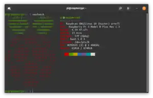 We can finally install some software. Type sudo apt-get update && sudo apt-get install python3-pip tmux git libatlas-base-dev to install programs that are needed to use the Growbot. If you want to have a bit of fun before moving on, you can also install neofetch with sudo apt-get update && sudo apt-get install neofetch -y. Neofetch can be run by simply typing neofetch into the terminal. It will then print out some neat information about your Pi. If afer any command has finished, you find the left over output ugly, you can declutter the screen with the command clear.