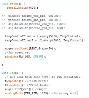For the next semester of this project, the goal is a complete and functioning machine with a full UI and compatibility with multiple plastic types. Planning has already begun for the creation of a UI for easier user interaction with this system and all code has been designed so it can easily integrate with a UI. Below is our example code running the main loop set to begin testing.