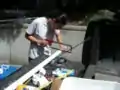 We began this project in the beginning of February, 2007. We first took measurements of the roof and calculated the roof surface area to see how much rainwater we would be able to potentially collect. We decided on the size of the main storage tank from these calculations. Next, we cleared the area where the storage tank would sit of brush, leveled the ground for the concrete slab, built a frame for the slab and had the concrete poured into the frame. Because the labor for the concrete slab was contracted out, it was poured at the end of March; due to this fact, we were not able to construct the actual rainwater catchment system until the beginning of April. Constructing the rainwater catchment system took approximately three days; this construction included moving the main storage tank to the designated location, piecing together all of the PVC tubing and fittings, making the sediment extraction bucket, cleaning the gutters on the roof, and all the other unforeseen details involved in this process.
