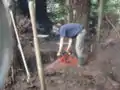 Before we built the frame for the concrete slab, we cleared out the area for the main storage tank to sit. This involved cutting small trees and shrubs, leveling the earth, digging out small and large roots, and moving rock to this site.