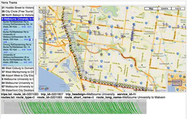 - https://github.com/vasile/transit-map and https://github.com/vasile/GTFS-viz, useful for creating a really nice visualisation of animated moving trains from a GTFS dataset, see http://simcity.vasile.ch/sbb/