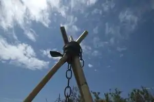 Bamboo poles with chain in the middle tied with inner tube