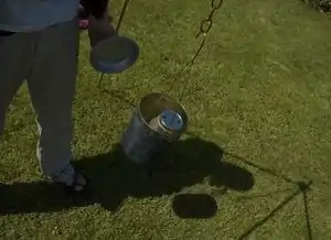 - A black stainless steel or cast-iron cooking pot with lid and suspension hooks would also be appropriate. No plastic can be present on the pot.