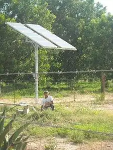 - The farmer said that he was using electricity rather than the solar panel at the time, because the weather had been cloudy. If he had been solely dependent on solar energy he would have not been able to irrigate when he needed to.