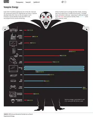 - ↑ Ecohuddle. “How to Reduce Vampire Power”. 2010.’’