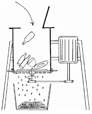 - ↑ There is nevertheless one major exception: the case in which a deposit is made up solely from two types of plastics whose densities are very different. Example: a mixture of PE and PVC. In this case, it is interesting to start off by crushing and then perform the separation by flotation in large tanks of water. PE, which floats in water, can be recovered at the surface while PVC is found at the bottom.