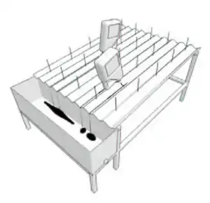 The grinding area is protected by a metal shroud (see Figure 4.8). The superior part serves the feeding area. Its right angular geometry and flexible component will protect the operator of the return of particles projected by the grinder rotor. We must also ensure that the feed zone is sufficiently high so it does not touch the knives. A hinge should allow to rotate it for gaining access the rotor for cleaning or maintenance of the grinder. Everything must be mounted on a high enough frame to allow recovering the plastic flakes in the trays.