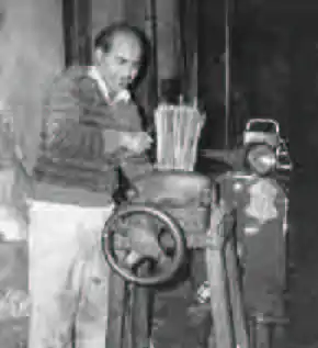 The manufacturing of profiles is achieved using extruders of the same type tho ones described for the granulating. Only the paths placed on at the top of the extruder differ. Thus, depending on the geometry of the path, it will be possible to produce plates, sheets, tubes, rods, pipes, ducts and a multitude of other profiles with complex shapes: window frames, slides, ... The extruder can be fed with recycled plastic pellets or directly with flakes, depending on the desired quality. At the outlet of the path, the profiles must be cooled in cooling baths before being cut to the desired dimensions. The obtained profiles can be used as such (hoses, drainage pipes, plates, ...) or they can be assembled (window frames, sanitation, ...). Image 5.7 illustrates the traditional manufacturing of brushes. These are made using filaments, extruded and cut at forty centimeters. They are then gathered and tied together at the end of a stick of wood serving as the handle.