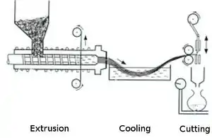 - We continuously extrude a tube which is cut into the desired length sections (called "paraisons"