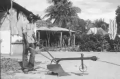 The AECP plough is inspired, both in the design as well as manufacturing proces, on the small model of plough also used in Western Europe before the Second World War. Through the course of time, the plough has evolved until it finally became the model which is presented here. The main improvements done have been increasing the ease of manufacturing and maintenance, the durability of components, and an increase in ease of use and the altering of settings. The main difference with this plough is its adjusting device: the Workshops-schools have found that the classic devices were often misunderstood by farmers. The adopted system is simpler to use and easier to make, while providing an aduquate setting of depth and width of the trench.