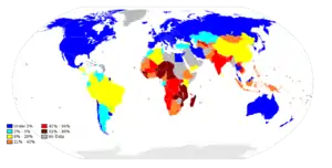 The financial limit under which someone is labeled as being "poor" does not exist. Depending on the country, there is a "national poverty line". These differ greatly from one country to another. Although commodity prices (ie for food, ...) also fluctuate between countries, and although heating may also be not needed as much depending on the country, the numbers do not explain such great differences in the amounts. [2]