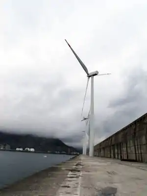 On February 15th, 2006 a company called Acciona http://www.acciona.com/ which currently operates in 32 countries and employs over 32,000 workers and is a leader in renewable energy opened a wind park at the edge of the Port of Bilbao. The five turbine system is what is termed as a 'near shore' wind farm since it is not out in the ocean but actually attached to a concrete platform that helps protect the dock from ocean waves. The structure is called the Punto Lucero Dam.