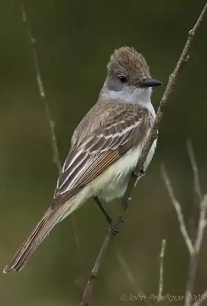 | Ash-throated Flycatcher: (Fig.4) | 8". Dull olive color above and yellow below. | Purreeeer! | 4-5 brown-spotted, creamy white eggs in a nest, found in a tree or cactus hole. | Southeast of U.S. |
