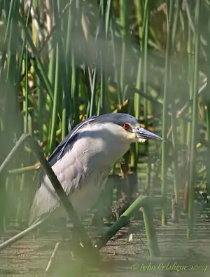 | Black-crowned Night Heron: (Fig.3) | 23-28”, wing span 3’8”. Medium sized, short and stocky. Black crown and black back. Grey wings and white underparts. Black, short bill, pink/yellow legs. Plumes appear on back during breeding season. | loud, barking kwok! Quawk! In the evening or night time. Harsh calls. | 3-5 blue/green eggs found in thicket or reeds, rarely put into trees. | Pacific Coast through Canada and US. Mid-western states, and east coast of U.S. Not found in Rockies. |