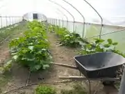 As it stands the 42,000-square-foot health facility located on a 40-acre site next to Mad River Hospital in Arcata, California has undergone additional developments. This page specifically gives updates that summarize findings it's local community garden. Specially, the community garden has provided two additional greenhouses, these were constructed within spring 2013/summer 2013. The materials that compose the green houses are from recycled scraps of wood for structural design and old fans to level humidity levels.