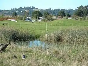 The second purpose of the treatment pond is to encourage natural habitat. The pond's design includes raised islands which create a resting place for water fowl. It is also home to the Three Spine Stickleback, a highly adaptive 6-10 cm long fish, which is indigenous to Humboldt County. Two other indigenous species that the pond is home to are the Red Legged Tree-Frog and the Western Frog. This is to promote sustainability of the environment at Potawot.[1]