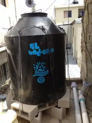 Storage can be either underground or above ground, including cisterns, tanks, and barrels. Container materials include clay, plastic, and galvanized steel. To avoid algae growth tank should be stored away from direct sunlight and should not be transparent. Placement of tank is also important, in order to take advantage of gravitational flow, it should be placed at an elevated area. In order to reduce the distance that needs to be traveled by water, and therefore avoid contamination, tanks should be placed close to area of use. (City of San Diego, 2007).[17]