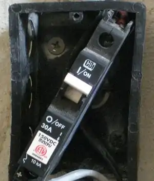 | Panel Breaker | 30 amps shuts off current of PV panels to the rest of the system. | ![]() |
