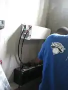 | June 5 | The inverter was taken to SM Electronica by local electrician and taxi driver, Tito, to be fixed. The team called Eddie to ensure that he had the tools needed to construct a compartment to hold the batteries at the system in Ghetto2Garden for next Thursday's proposed construction meeting. (Update: Tomas informed the team that there is a shelf sturdy for the batteries). Therefore, communication is a vital component as the team spent a lot of time and energy planning the shelf and with this new information we are able to adapt to new circumstances and use the materials in another way. | ![]() |