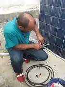 | June 26 | Today the 250W and 24V solar panel and accessories were purchased from Téchnica Electromecánica Núñez with a grand total of RD$37,045. The team was planning on rewiring the Ghetto2Garden system with our professor/director, Lonny, however Tomas told us that he would not be able to get us a ride. Therefore we spent the time planning what had to be done over the next week and assigning tasks. Afterwards we received word from Tito that he will be able to go and give us a ride. With the limited notice our team leader accepted the late night challenge to rewire the system with the help of another member and supportive phone advice from Lonny ultimately able to complete the task. | ![]() |